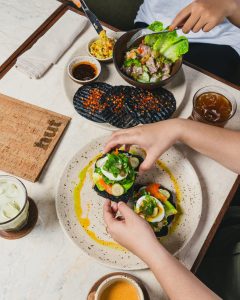 • Eggs Benny dengan sriracha hollandaise—kombinasi creamy, segar, dan sedikit pedas.